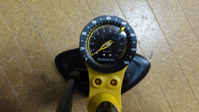 今まで使っていたフロアーポンプは、5年使って動作がいまいちになってきたので買い換えました。 ゲージは下の方ですが、見やすいです。 本体は重たいのですが、本体の重みで使うときに安定をしていて良いです。