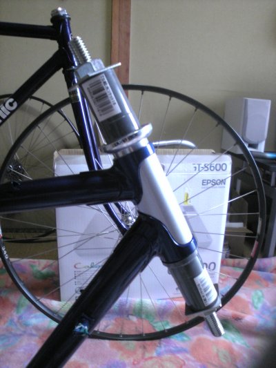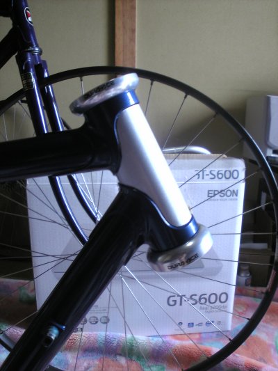 古いロードレーサーのフレームの組み立てで、自信がなかったのがヘッド圧入でした。 まずは上ワンからです。 専用工具は高いので、適当に作ってみました。 ネジを締めていけばこのまま真っ直ぐに入ってくれるだろうと 思ったら固くて固くてなかなか入らず斜めに入るわプラスチック のパイプは割れてくるわ で、大変でした。 最後はハンマーで叩きながら 何とか上下とも無事に入りました。