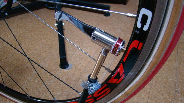 今までタイヤはずっとビットリアストラーダを使っていたのですが先日パンクしたのを機に 今度はパナレーサーのPractice Dual TGにしてみました。 ピンクに近い赤、このロードバイクに似合いません。(笑) 問題発生、バルブが短いので今使っている空気入れが使えません。