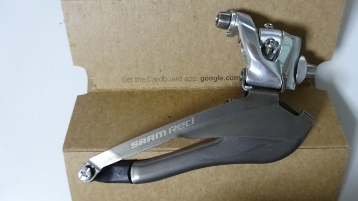 スラムAPEXのFDの動作がイマイチなので、フォースを探していましたが 最近始めたメルカリでレッドを見つけたので購入しました。 送料込みで2400円でした。 大変お得な価格です。 羽根の部分はチタン合金です。 噂では、このチタンの羽根はたわんで変速性能はよくないのだとか。 しかし、傷は少なく綺麗です。 チェーンの跡はこの程度で新品同様と言ってもいいくらいです。 取り付けた後、性能はどうかな。
