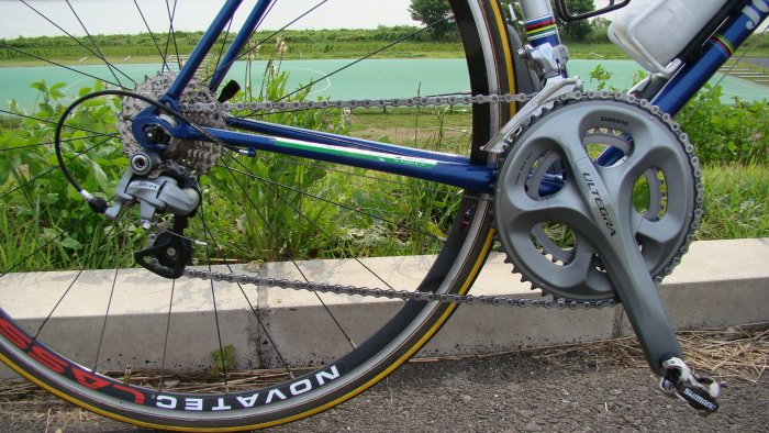 再レストアしたクロモリロードのクランクはFSAの安価な物を取り付けていましたが