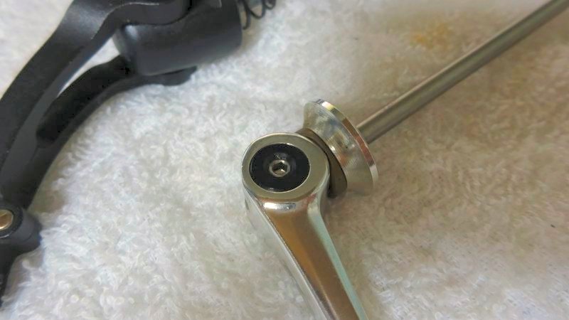 購入したトーケンのホイールですが、クイックがイマイチよくないので、 フルクラムレーゼロのクイックと交換です。 メッキで、デザインは良いんですが。 強く締めると左の根元の部分が削れます。 強く締めないと少しガタがでるので。 締めるときスムーズではないです。 徹底した軽量化のためなんでしょうけれど、リムも細いホイール。 頻繁にホイールを外すことがなければ問題ないことですが。