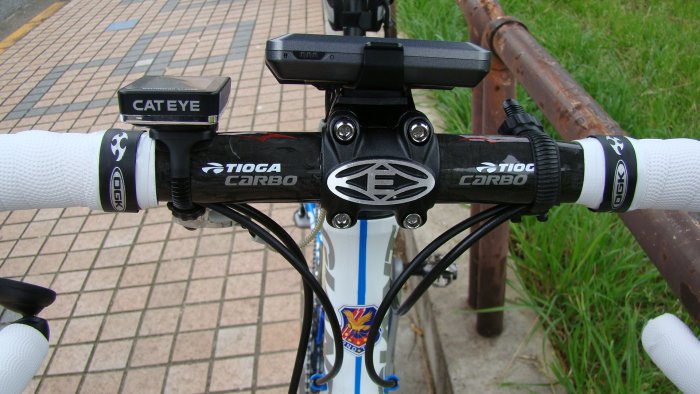 ハンドル・ステム・シートピラー・シフトレバー・FR・RD・クランクセットを交換しました。 今年は、長距離を走りたいと思って乗り心地を良くするためにハンドルはカーボンにしました。 ステムは巨大な?EASTONのMTB用のステムです。 幅があるのでGPSが安定して乗ります。 シートピラーもカーボンにすると乗り心地が良くなりそうで。 クランクセットは105にしました。前50・39・30 です。 これで貧脚をカバー。