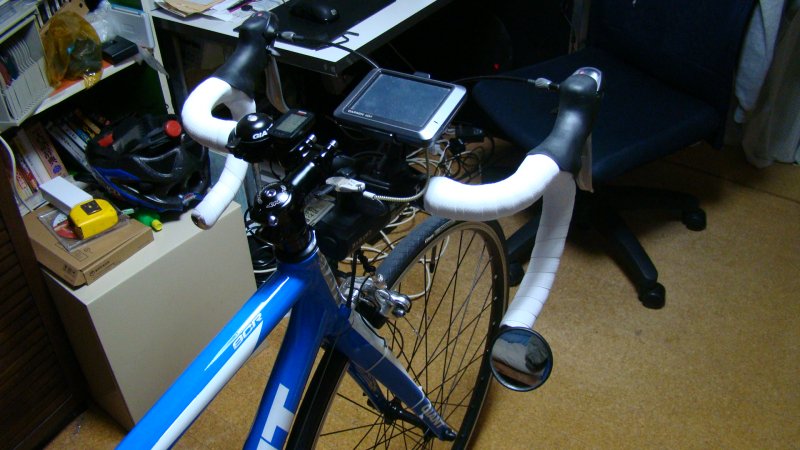 私の身体にはフレームサイズが大きかったのですが、ステムを交換することで対処しました。 元のステムの長さが90mmで、交換するステムの長さは70mm。 大分短くなったように見えます。序でにバーテープを白に。部屋の散らかりは気にしないで下さい。(笑)