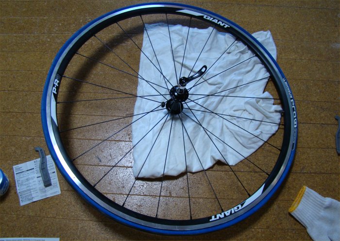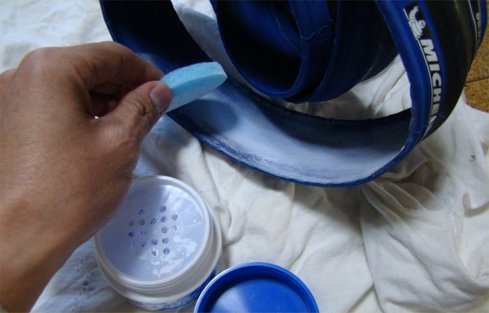 タイヤを装着する前に、自転車用のパウダーを塗りました。