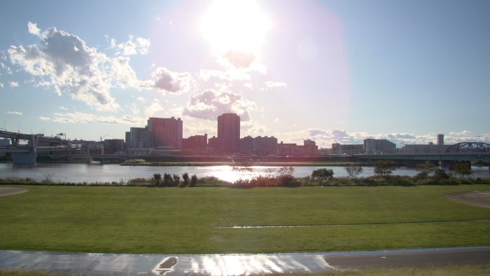 台風の後の、荒川サイクリングロードは、水浸し状態でした。