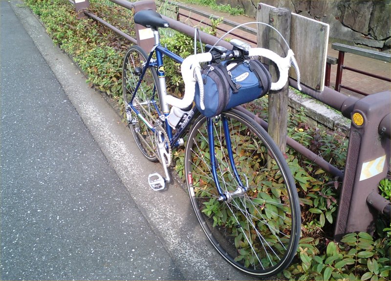 組み上げて、初走行です。予備タイヤ2本と工具一式をフロントバックに。
