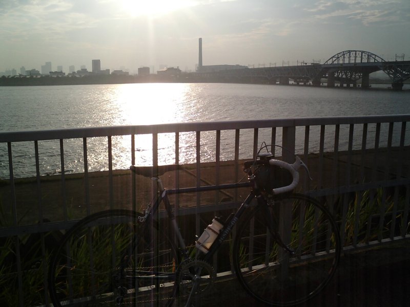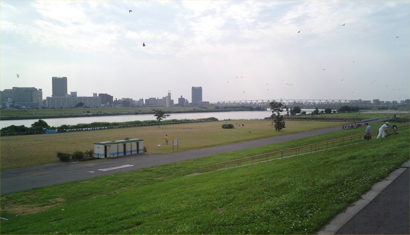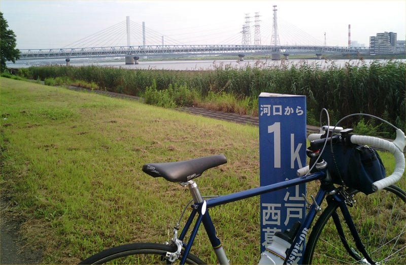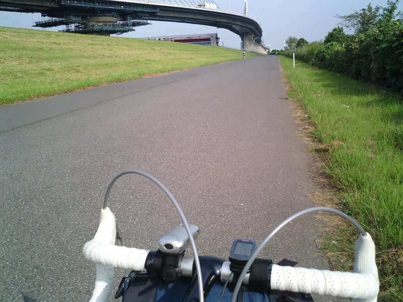 堀切ジャンクション付近、荒川サイクリングロード左岸を河口に向かいます。