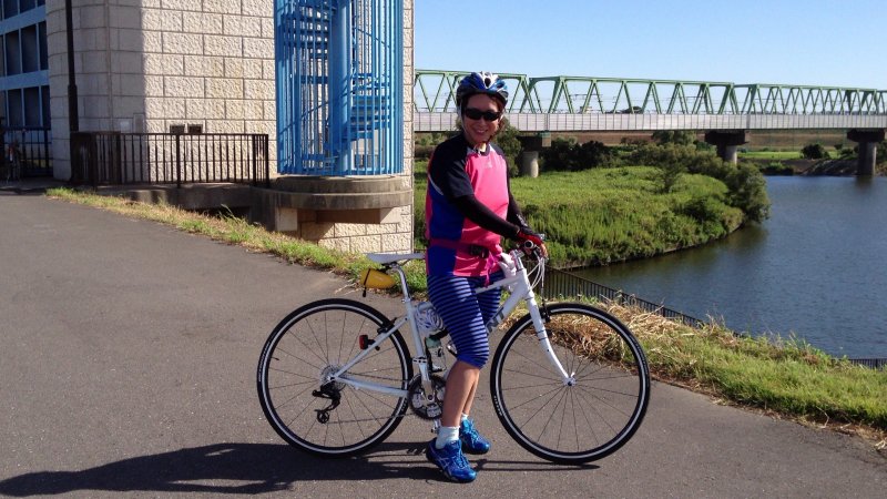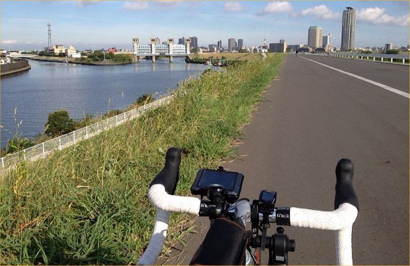 途中の荒川サイクリングロードで。
