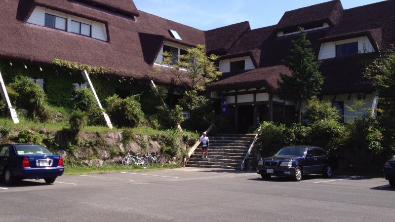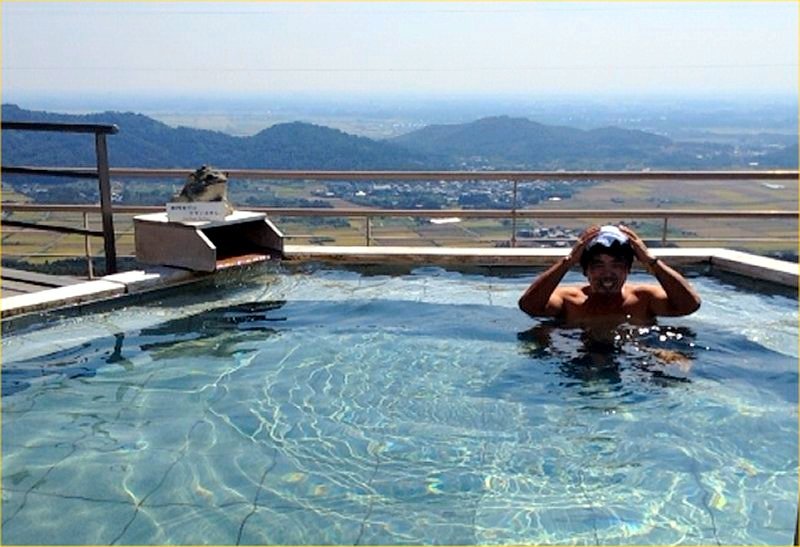 近くのホテルの露天風呂に入って汗を流しました。