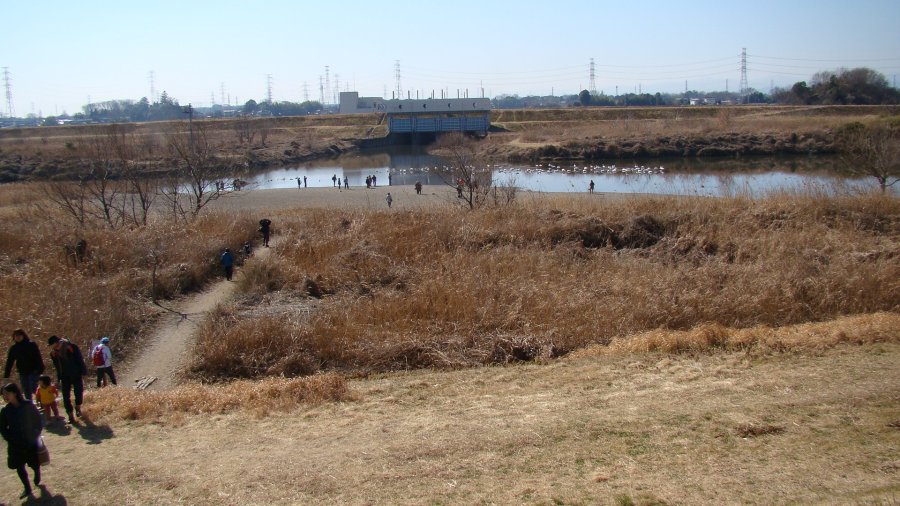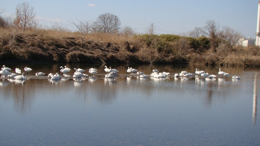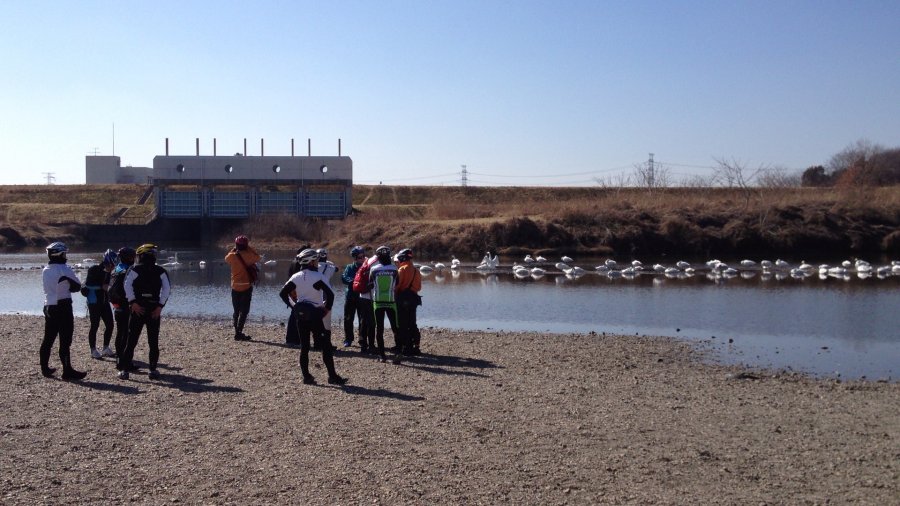 川島町に到着、白鳥が見えます。こんなところに白鳥が飛来するのかぁ。