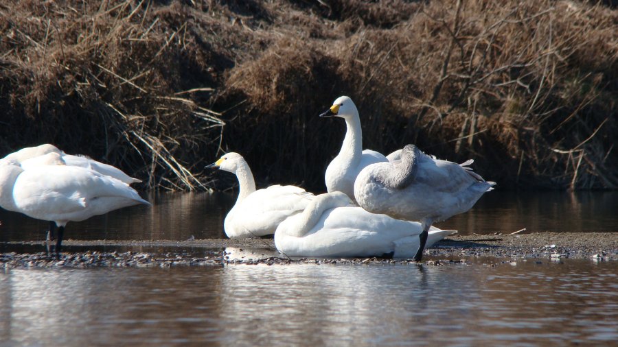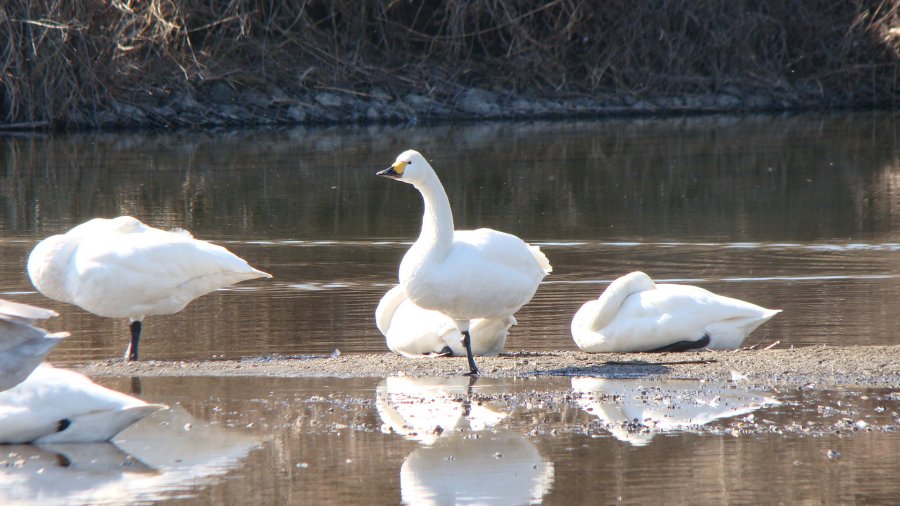 ほとんど白鳥は寝ているようで動きません。ロシアからの飛来でお疲れでしょうか。(笑)