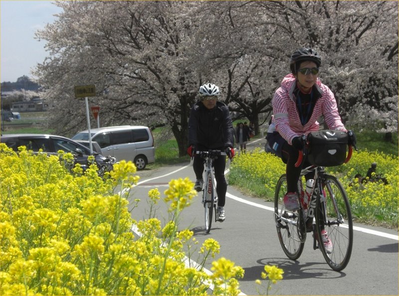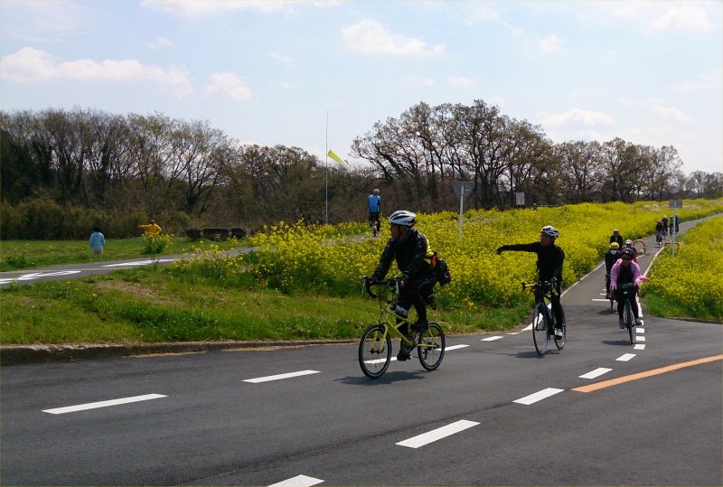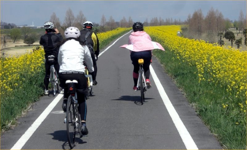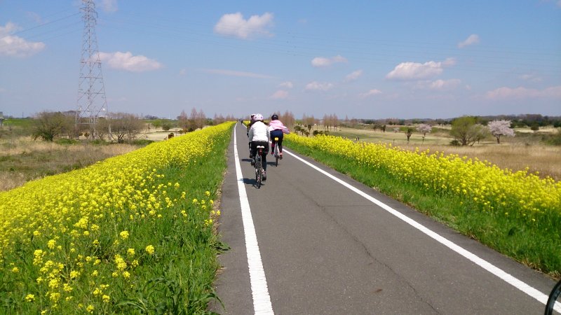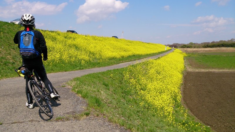 菜の花が続くサイクリングロードは圧巻でした。