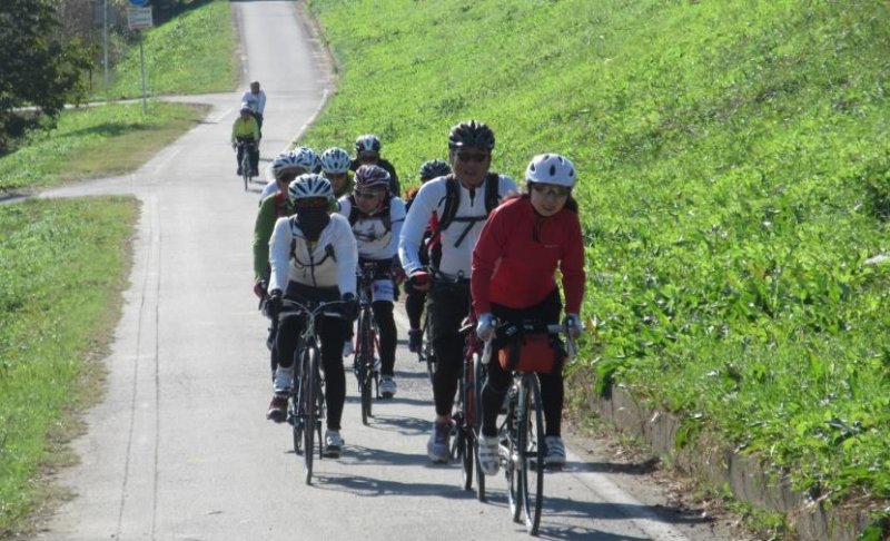 往きはここまで自由走行になり、独りカッ飛んで(大した速くないけど)手前であきさんと合流。したみちさん到着