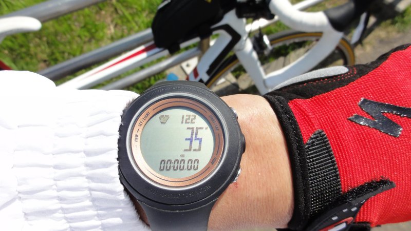 今日は、心拍のチェックをしながら。