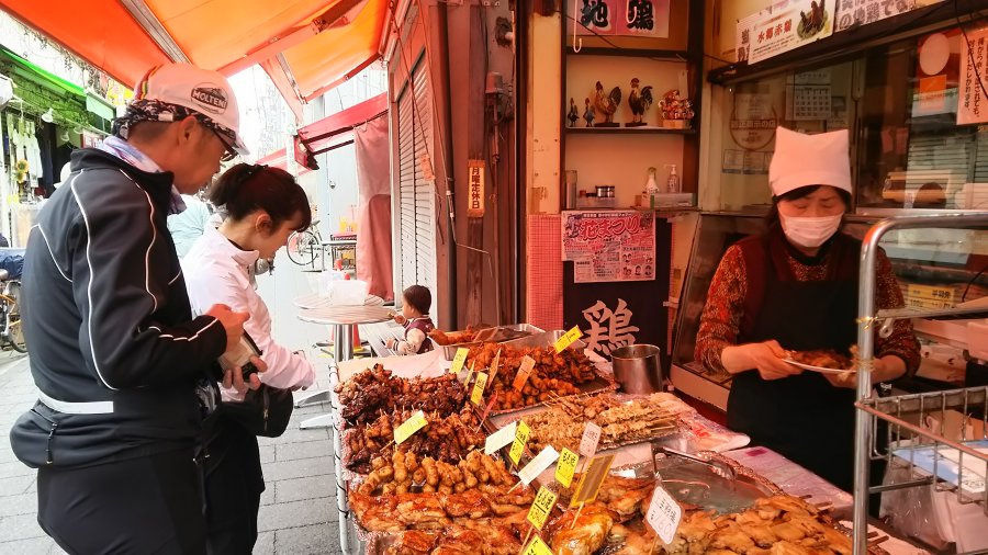 次は、砂町銀座商店街をぶらぶらと。焼き鳥屋さんで。