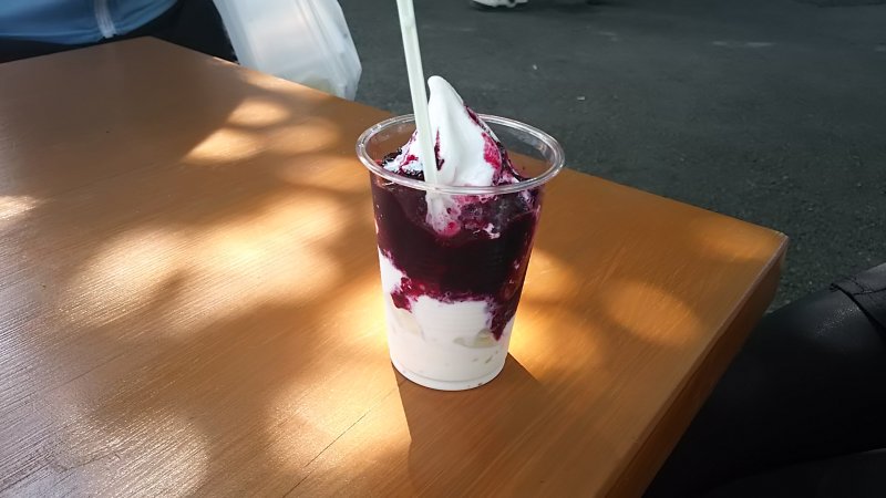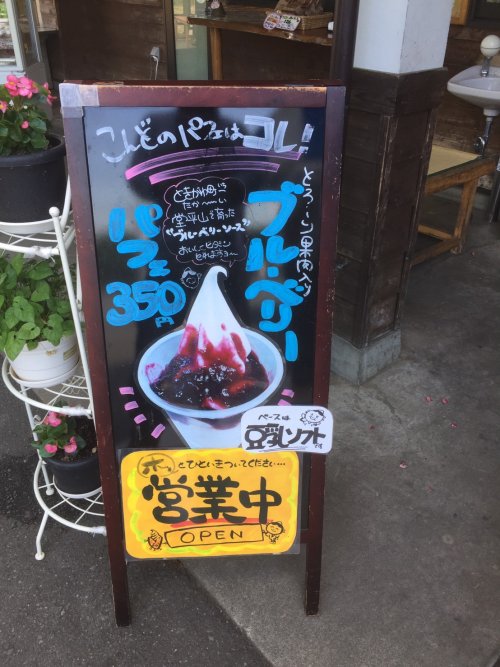 その後は、とうふ工房わたなべで買い物とブルーベリーのパフェを。