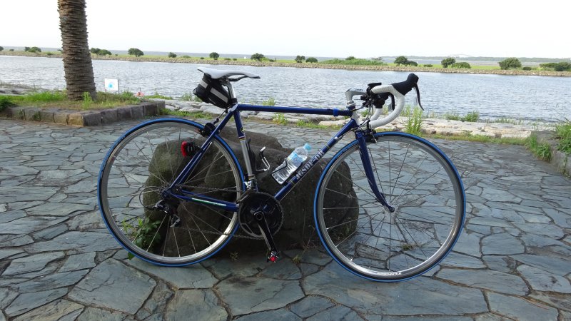 帰る途中には、ハンドルの角度を若干下げて左のブラケットが若干低く見えるので上げて。