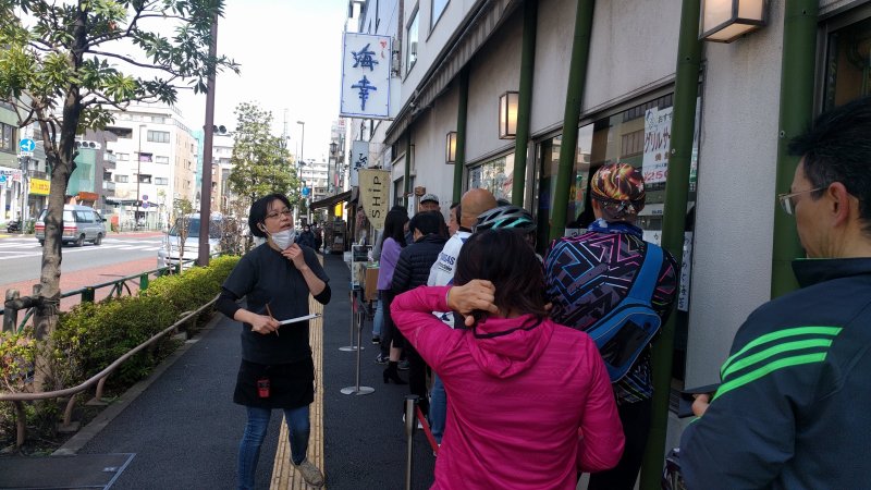 11:03 11時開店で並んでいたお客さんは入ったようで、1時間待ちです。
