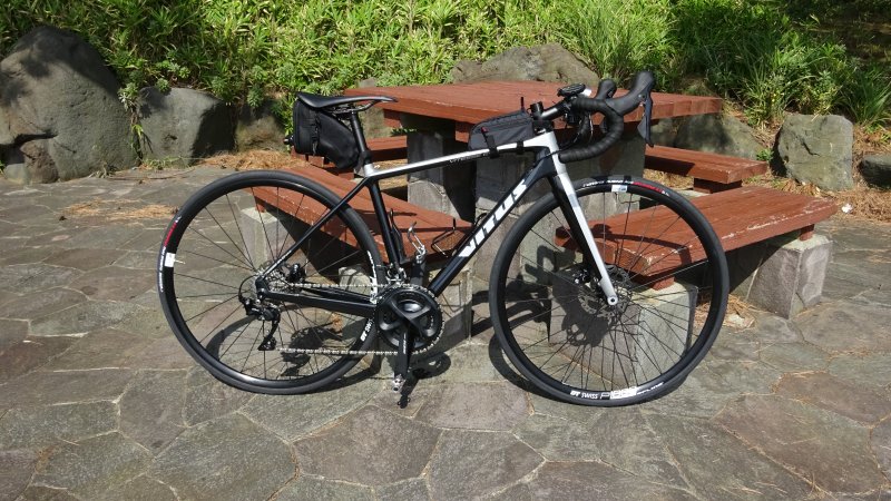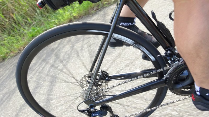 重量は8.2kgなので、前に乗っていたジャイアントの超軽量アルミフレームと