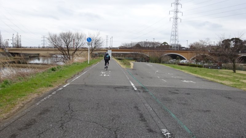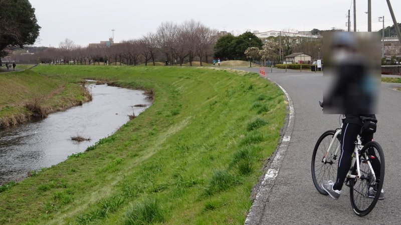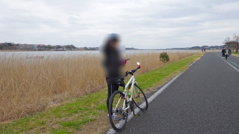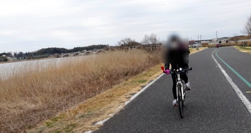 Rさん重たいクロスバイクで強い向かい風の中飛ばす。