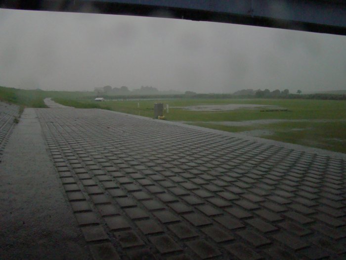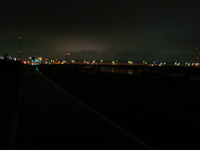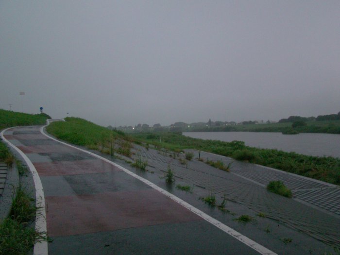 帰りは大変な雷雨に見舞われました。この先100mくらい先に雷が落ちました。さすがに恐怖。 私も自転車もびしょびしょ。 水元公園近くの橋です、ここまで来るのに3度の雷雲に遭遇危険で休み休みになりました。