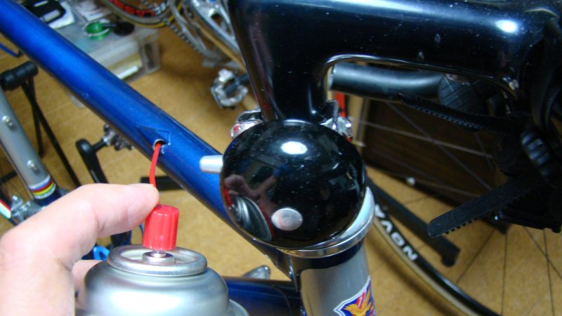 実際には、フレームを縦にして汚れを吹き出すようにスプレーしました。