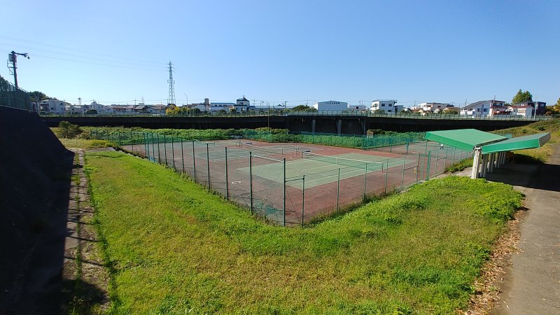 遊水池の中にあるテニスコート。