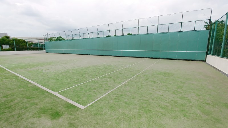 ここの壁打ちの先にはテニスコートがあり、ホームランになるとボールは