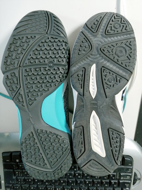 オムニコートで使うシューズなので、ピタッと止まるのではなく滑る感じで