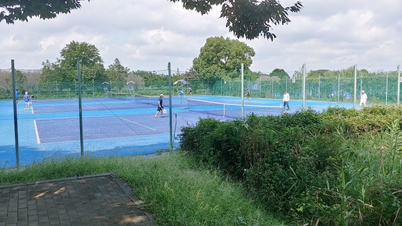 15分くらい前にコートに行くと、年配の方々がやってる。