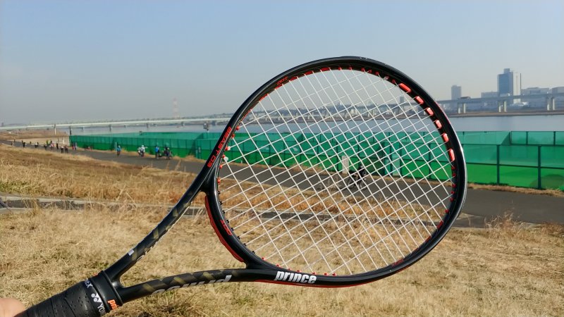 逆光だからもあるんですが、ラケットのフレームに当てる