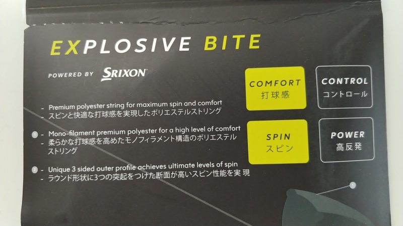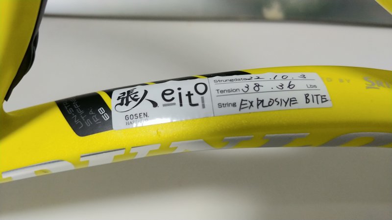 エクプロシブバイトを張ったビーストが 使いやすかったのでSXに張ってみる。 テンションはビーストに張ったのと同じに。 打感が硬いと飛ばないと思うので柔らかめに。 黒のガットが似合っています。