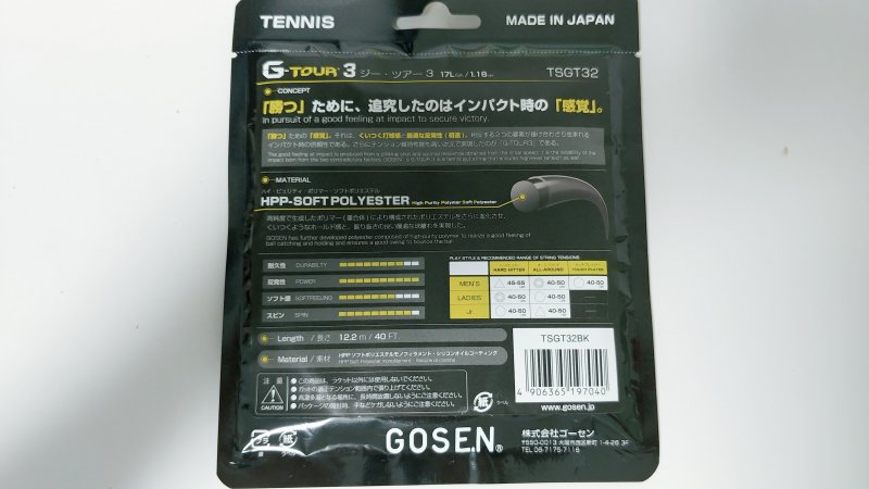 G-TOUR3は初級者が扱えるガットではないよ