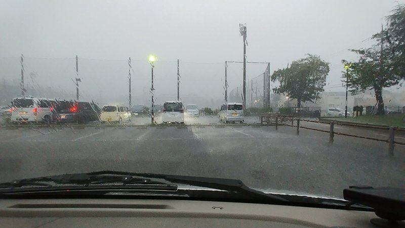 雨が酷いので車の中で20分くらい休んでから