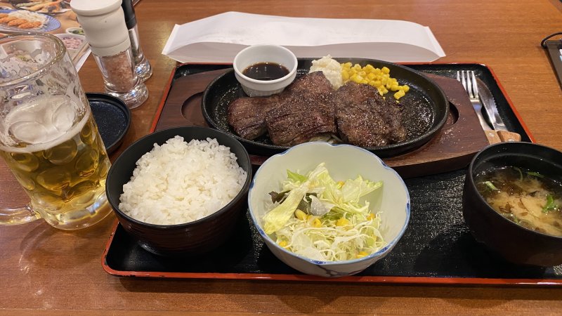 ハラミのステーキ200g定食。