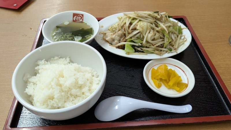 帰りはいつものラーメン屋さんで野菜炒めセット。