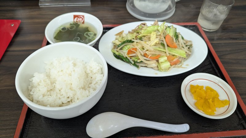 帰りはいつものお店で野菜炒めセット。
